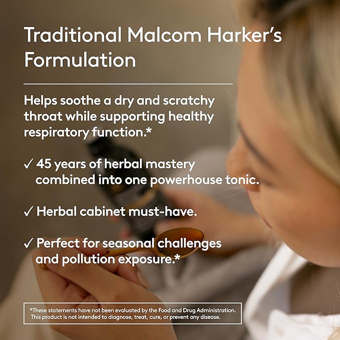 - Unique Formulation – Malcolm Harker’s original, time-tested formulation combines botanicals traditionally used to support lung and bronchial wellness including, elecampane, ginger, white horehound, cayenne pepper & licorice.