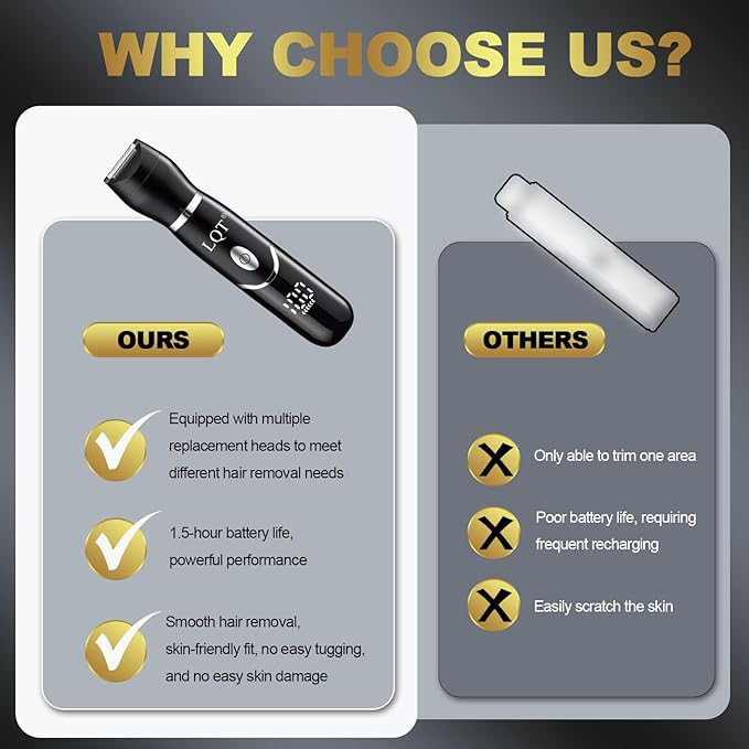 - đăSmooth & Comfortable Hair Removală: LQT high-quality electric body razors and facial hair remover feature stainless steel blades designed to provide a smooth and comfortable hair removal experience. The LQT electric razor is designed for sensitive skin, ensuring a safe and painless application process.