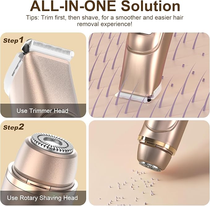 - Painless & Gentle Lady Shaver: Dual head shaver ideal women trimmer for pubic hair, ensuring a pain-free, irritation-free grooming experience, especially in sensitive areas