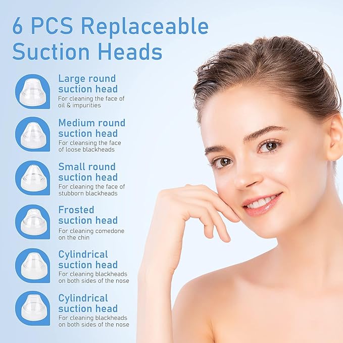 - 【What you'll get】Blackhead remover x 1, replaceable head x 6, stainless steel blackhead remover tools x 6, USB charging cable x 1, product manual x 1, a variety of accessories only to give you a better shopping experience.