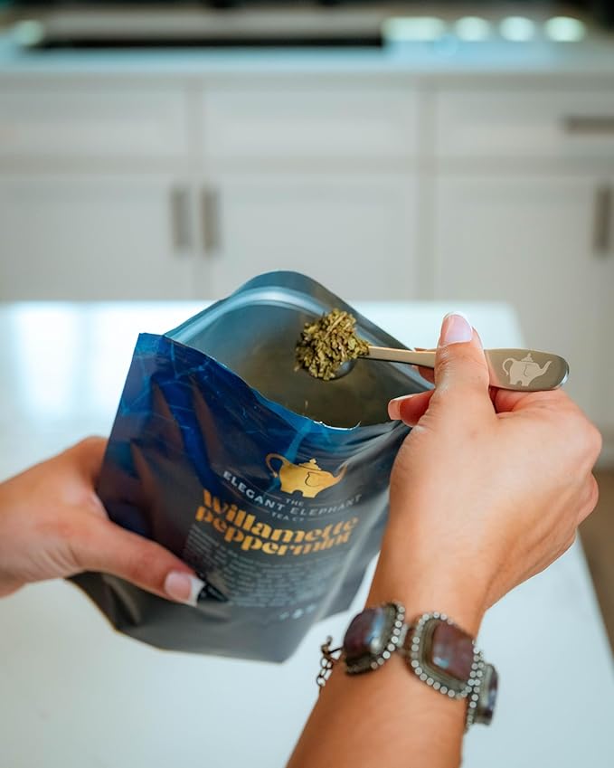 Willamette Peppermint Tea, Organic Loose Leaf Mint Herbal Tea – Soothing, Caffeine-Free – Refreshing Hot or Iced – 4 oz Resealable Bag (Makes 50 Cups) – The Elegant Elephant