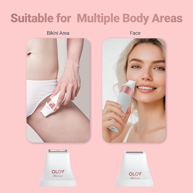 - [3-in-1Multi-Functional Trimmer] 3-in-1 blade for smooth and painless shaving of face, arms, legs, armpits, back and Bikini Area.The Bikini blade for accurate shaping of the bikini area with a 3mm guide comb for safe grooming, and the Mini Foil blade for ultra-close, comfortable removal of fine hairs on chin, lip, cheek, and bikini lines.