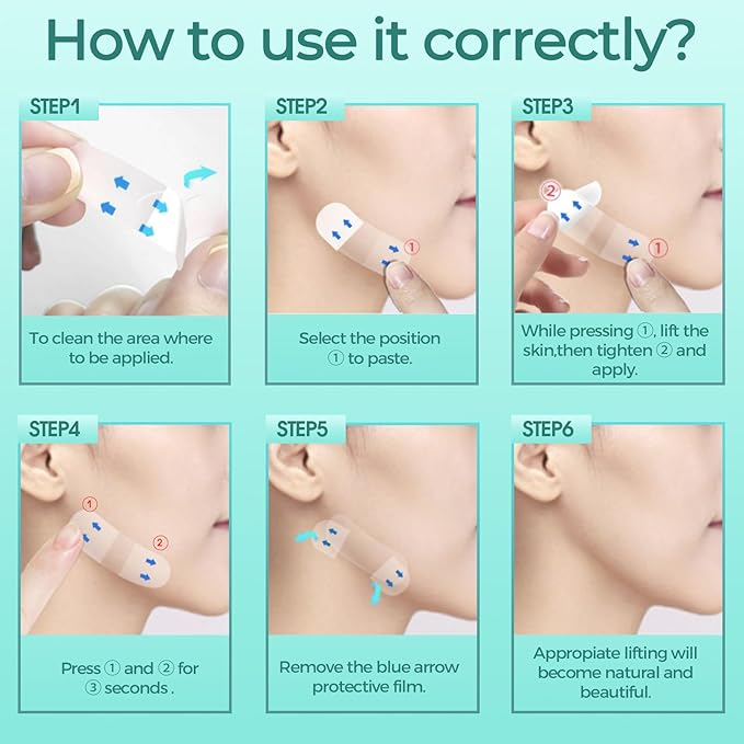 - 3-Step Magic--- Apply the face lift tape invisible in seconds: ① Stick the tape to your skin (start at the base), ② Lift 1-2 inches backward for a natural lift, ③ Secure by pressing for 3-5 seconds. Easy enough for beginners yet delivers professional results